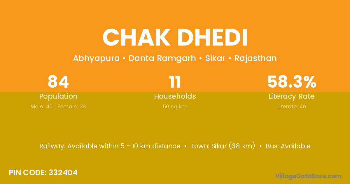 Sikar (38 km) is the nearest town to Chak Dhedi village for major economic activities and is located approximately 38 km away.