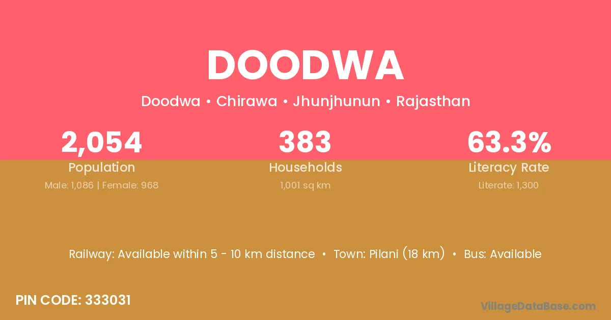 Sikar (42 km) is the nearest town to Doodwa village for major economic activities and is located approximately 42 km away.