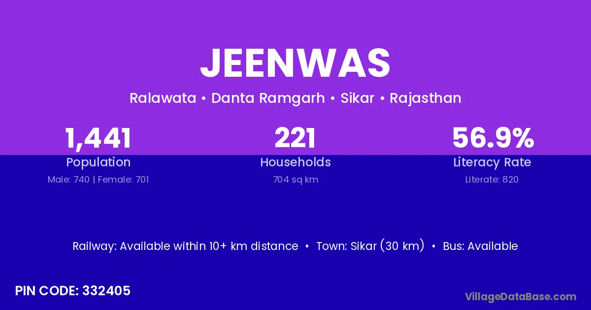 Sikar (30 km) is the nearest town to Jeenwas village for major economic activities and is located approximately 30 km away.
