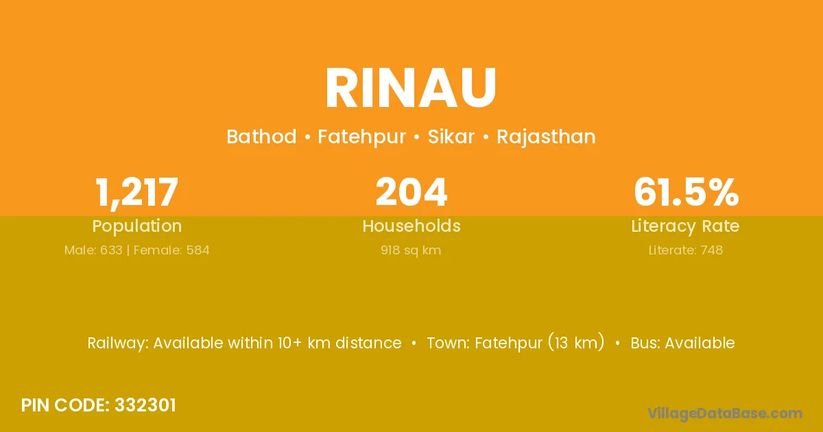 Fatehpur (13 km) is the nearest town to Rinau village for major economic activities and is located approximately 13 km away.