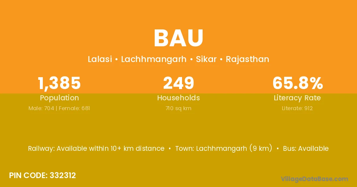 Lachhmangarh (9 km) is the nearest town to Bau village for major economic activities and is located approximately 9 km away.