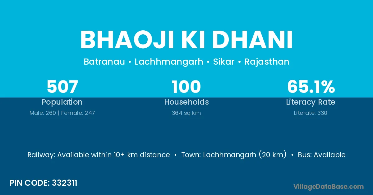 Bhaoji Ki Dhani village has a total population of 507 people, of which 260 are males and 247 are females.