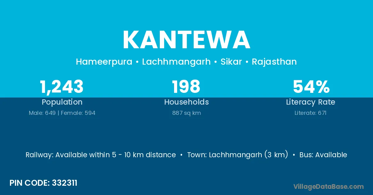Lachhmangarh (3 km) is the nearest town to Kantewa village for major economic activities and is located approximately 3 km away.