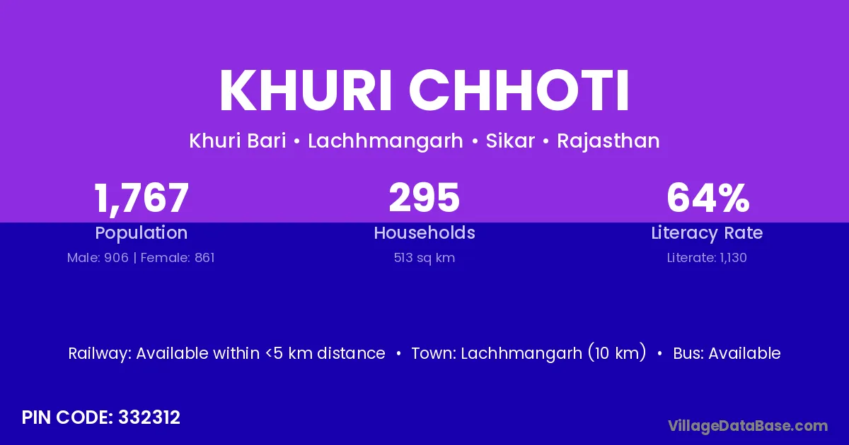 Lachhmangarh (10 km) is the nearest town to Khuri Chhoti village for major economic activities and is located approximately 10 km away.