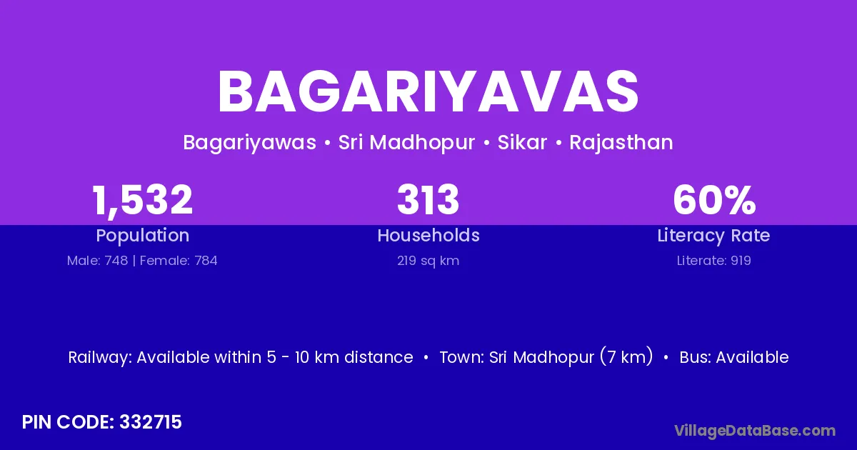 Sri Madhopur (7 km) is the nearest town to Bagariyavas village for major economic activities and is located approximately 7 km away.