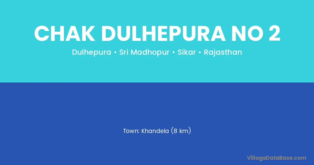 Khandela (8 km) is the nearest town to Chak Dulhepura No 2 village for major economic activities and is located approximately 8 km away.