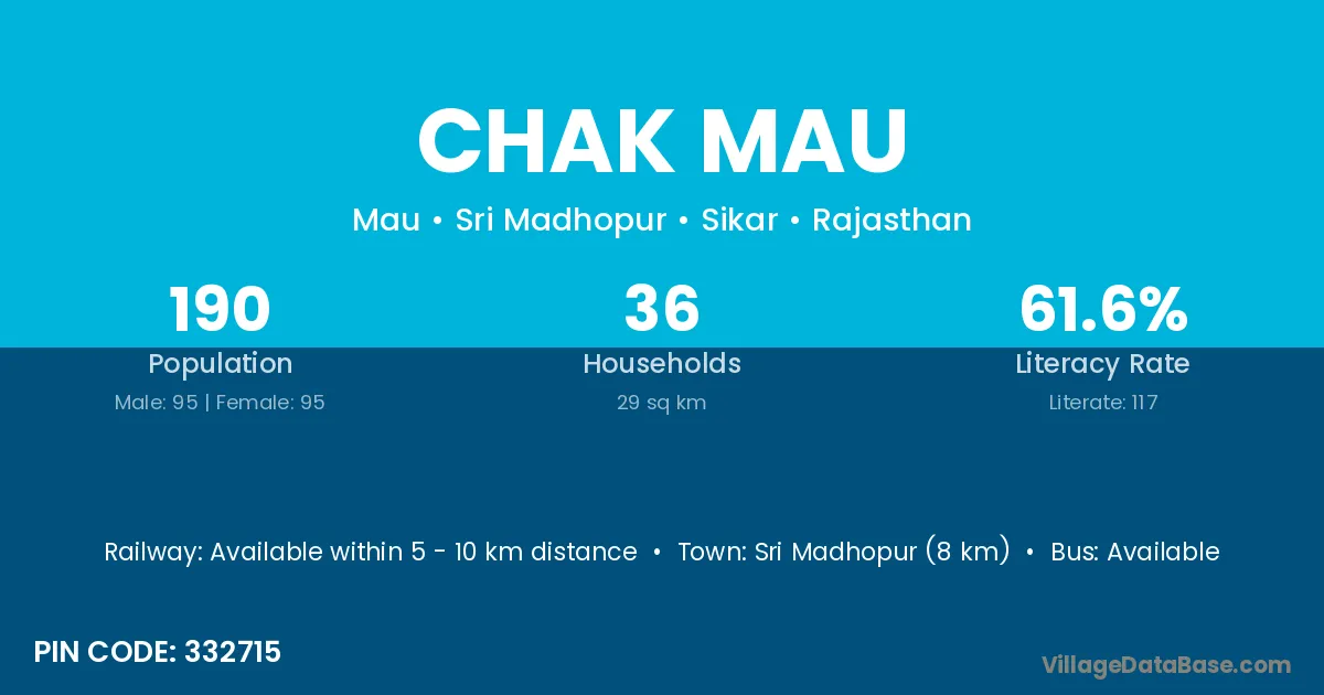 Sri Madhopur (8 km) is the nearest town to Chak Mau village for major economic activities and is located approximately 8 km away.