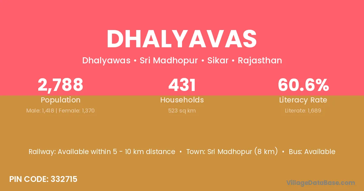 Sri Madhopur (8 km) is the nearest town to Dhalyavas village for major economic activities and is located approximately 8 km away.