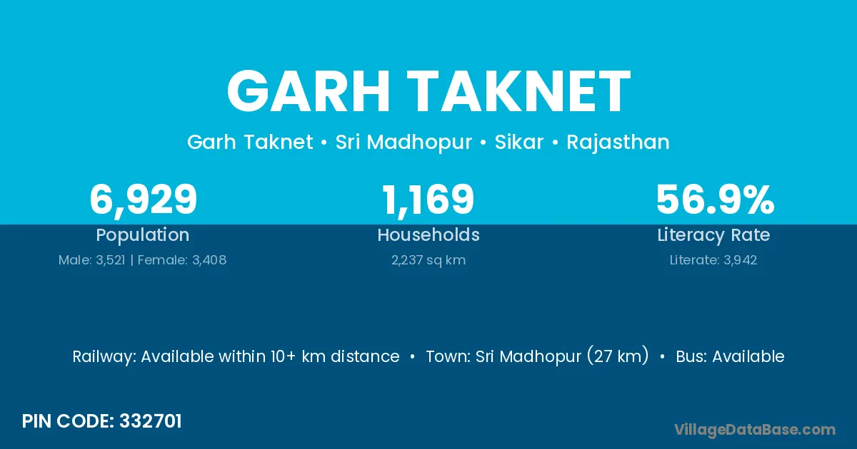Sri Madhopur (27 km) is the nearest town to Garh Taknet village for major economic activities and is located approximately 27 km away.