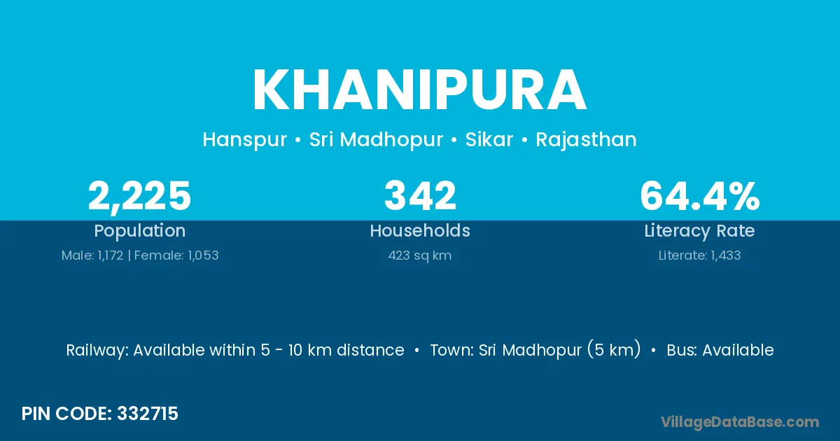 Sri Madhopur (5 km) is the nearest town to Khanipura village for major economic activities and is located approximately 5 km away.