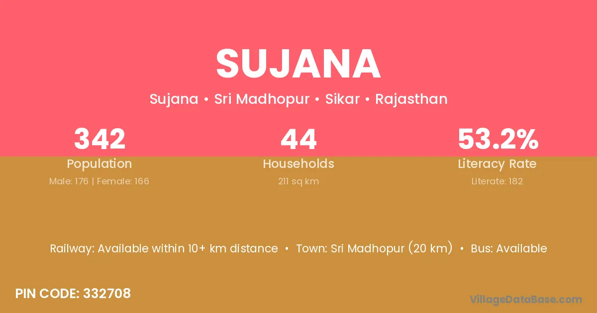 Sri Madhopur (20 km) is the nearest town to Sujana village for major economic activities and is located approximately 20 km away.