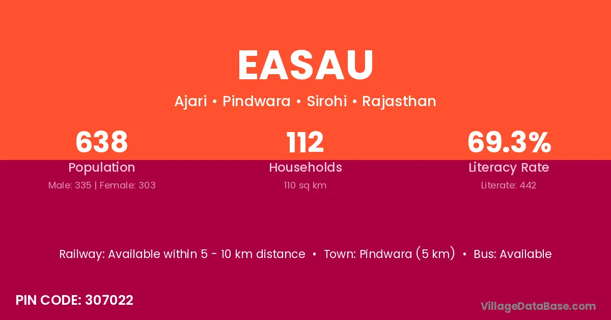 Pindwara (5 km) is the nearest town to Easau village for major economic activities and is located approximately 5 km away.