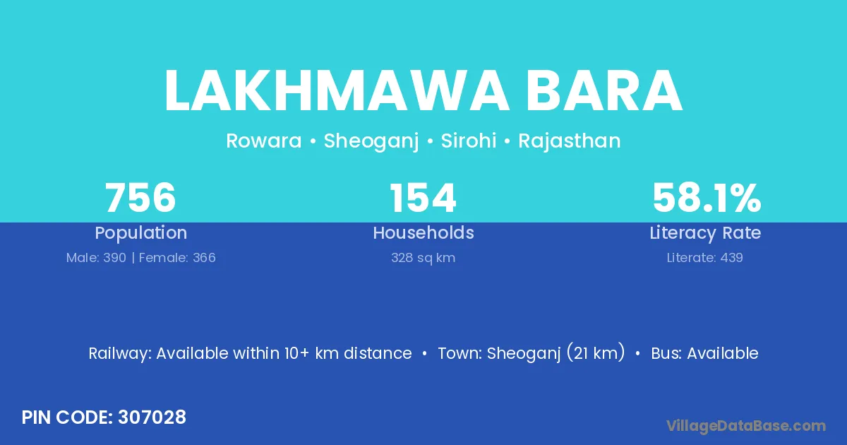 Sheoganj (21 km) is the nearest town to Lakhmawa Bara village for major economic activities and is located approximately 21 km away.