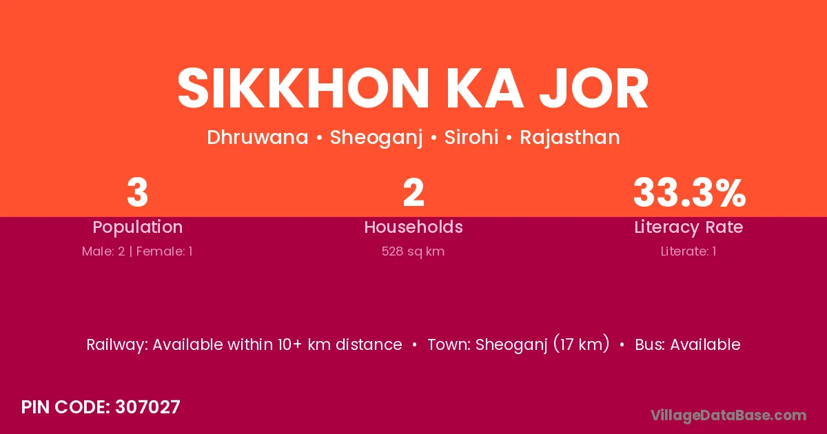Sikkhon Ka Jor village has a total population of 3 people, of which 2 are males and 1 are females.