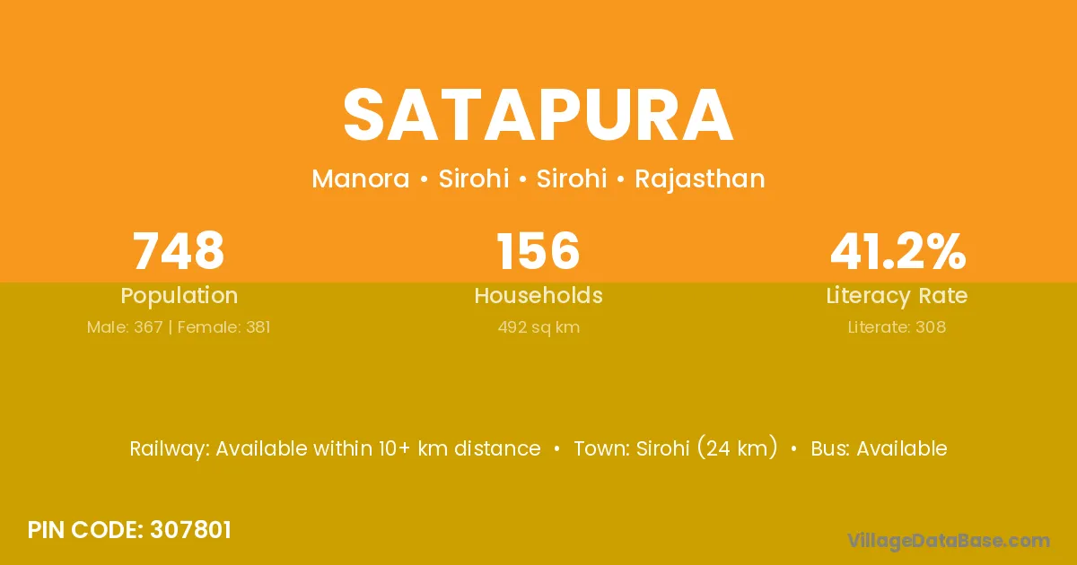 Sirohi (24 km) is the nearest town to Satapura village for major economic activities and is located approximately 24 km away.