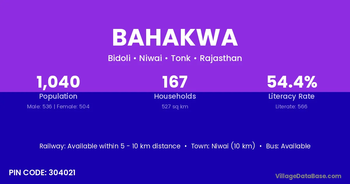 Bahakwa village has a total population of 1,040 people, of which 536 are males and 504 are females.