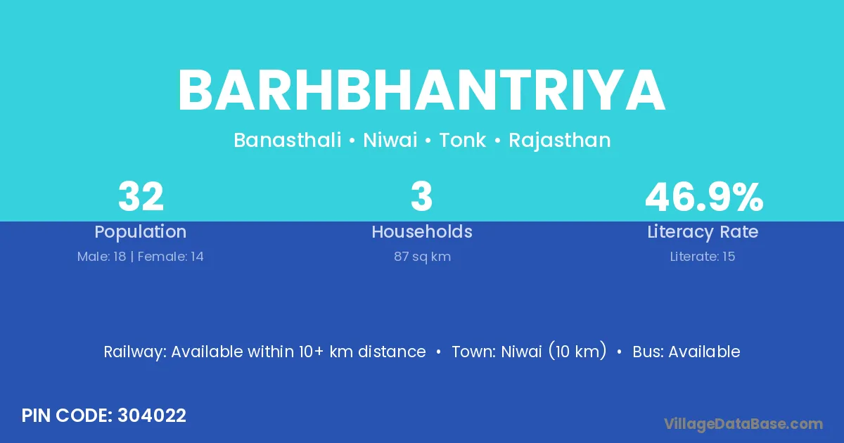 Niwai (10 km) is the nearest town to Barhbhantriya village for major economic activities and is located approximately 10 km away.