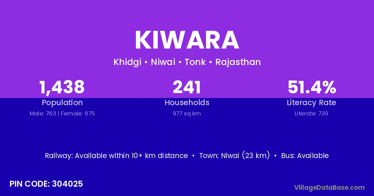 Niwai (23 km) is the nearest town to Kiwara village for major economic activities and is located approximately 23 km away.