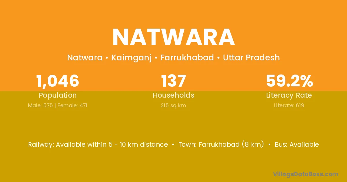The literacy rate of Natwara village is 51.20%. Male literacy stands at 66.89% and female literacy at 34.03%.