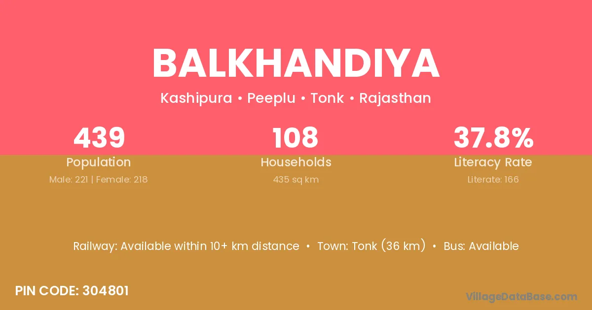 Balkhandiya village has a total population of 439 people, of which 221 are males and 218 are females.