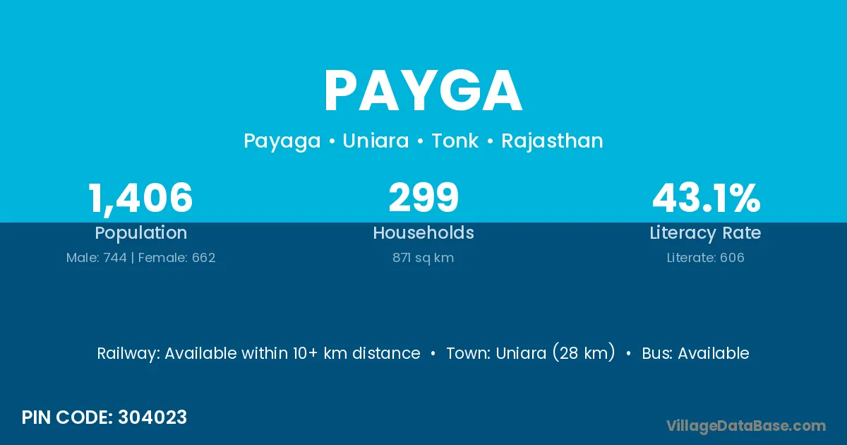 Uniara (28 km) is the nearest town to Payga village for major economic activities and is located approximately 28 km away.