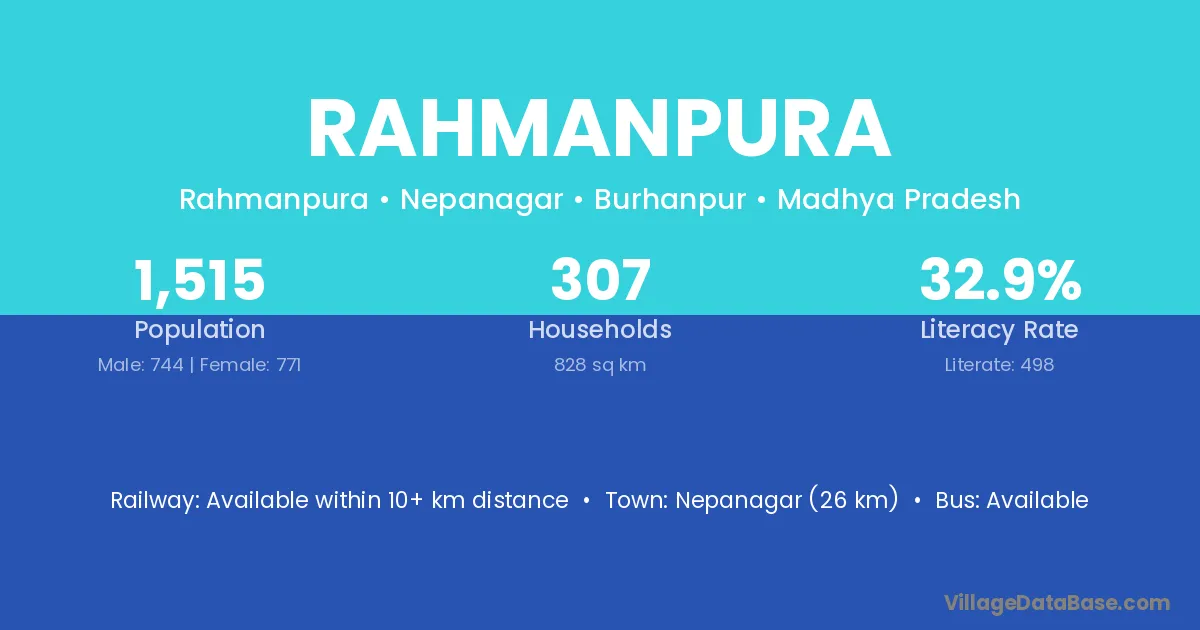 Uniara (20 km) is the nearest town to Rahmanpura village for major economic activities and is located approximately 20 km away.