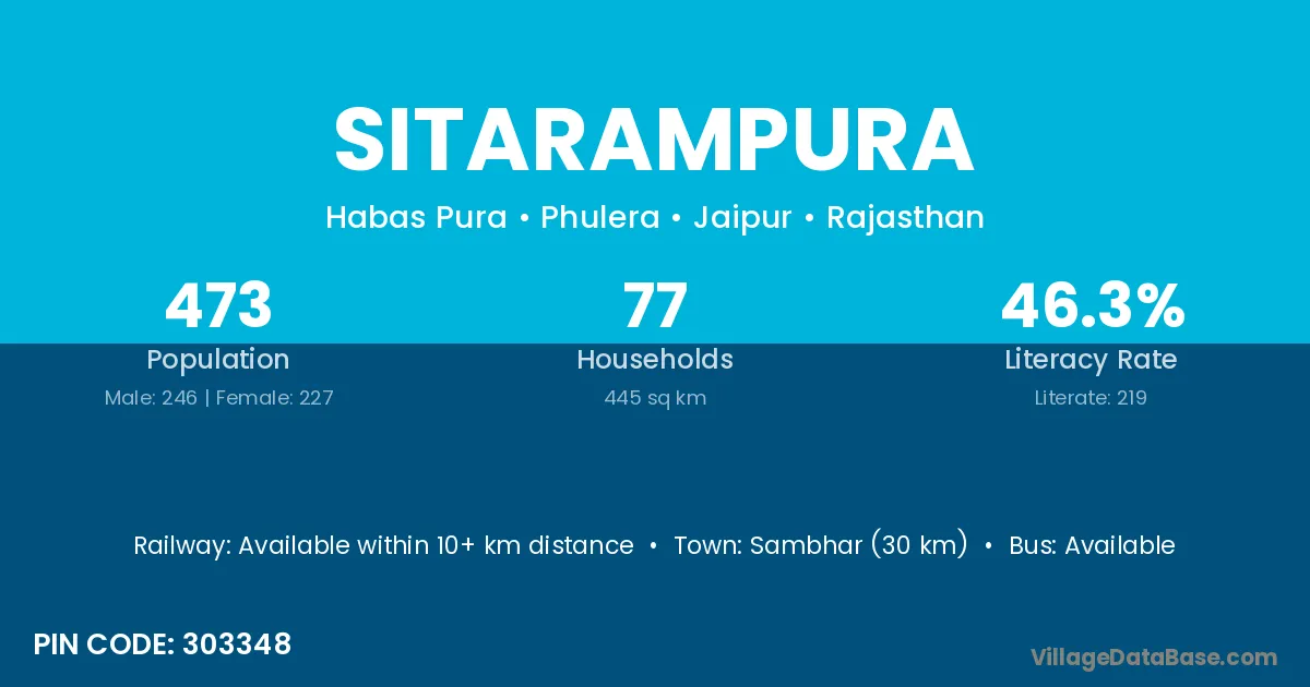 Uniara (24 km) is the nearest town to Sitarampura village for major economic activities and is located approximately 24 km away.