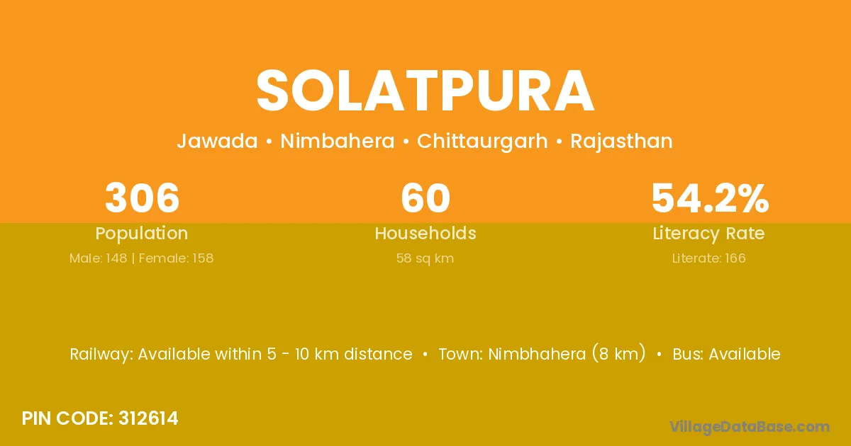 According to Census 2011 information, the village code of Solatpura village is 304023.