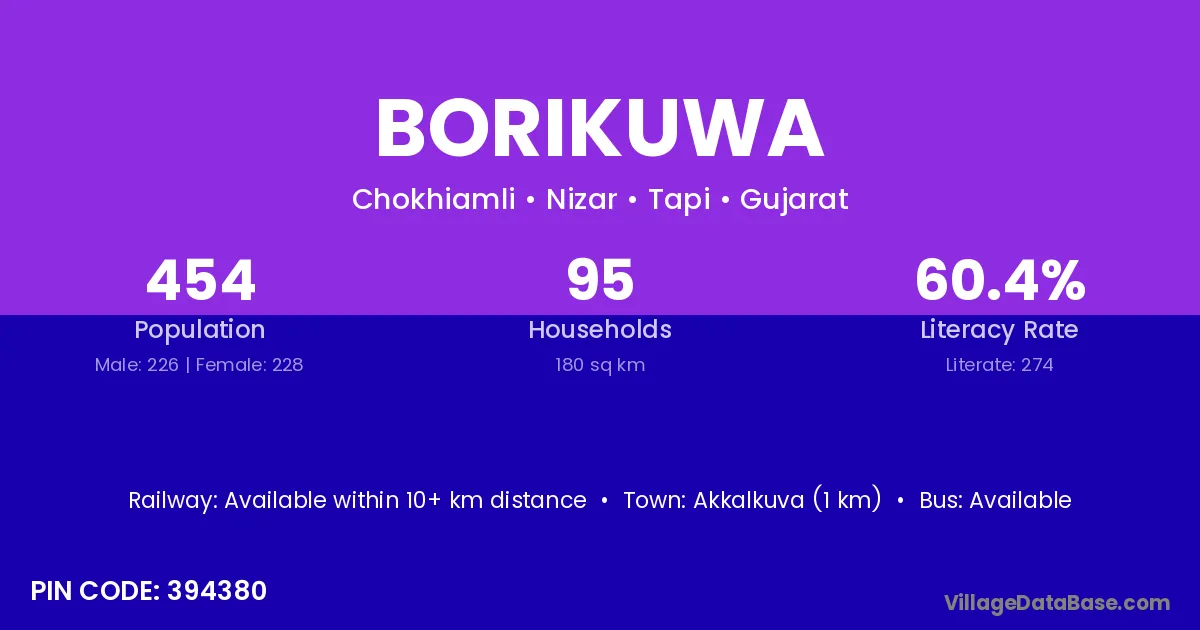 Borikuwa village has a total population of 1,407 people, of which 752 are males and 655 are females.