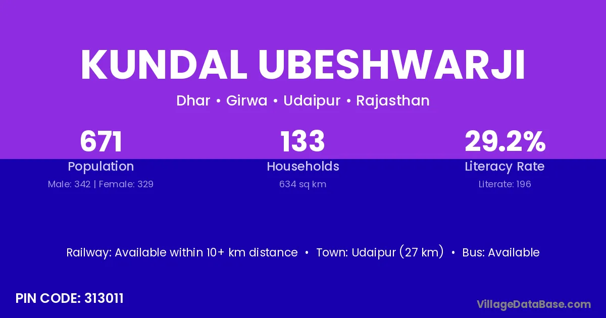 According to Census 2011 information, the village code of Kundal Ubeshwarji village is 313011.