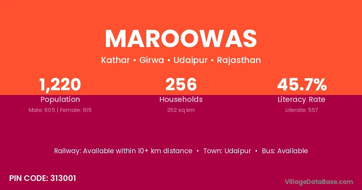 Udaipur is the nearest town to Maroowas village for major economic activities