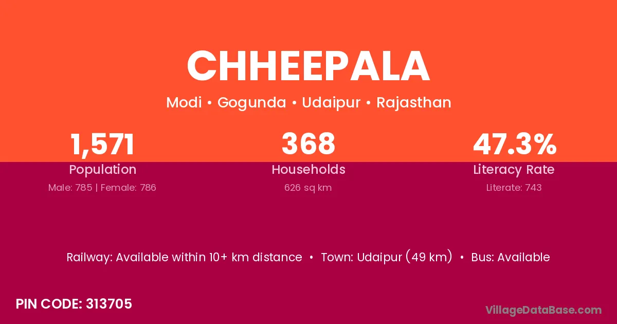 According to Census 2011 information, the village code of Chheepala village is 313705.