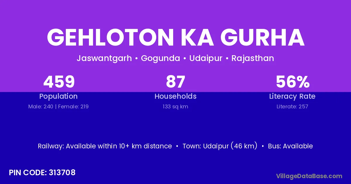 Gehloton Ka Gurha village has a total population of 459 people, of which 240 are males and 219 are females.