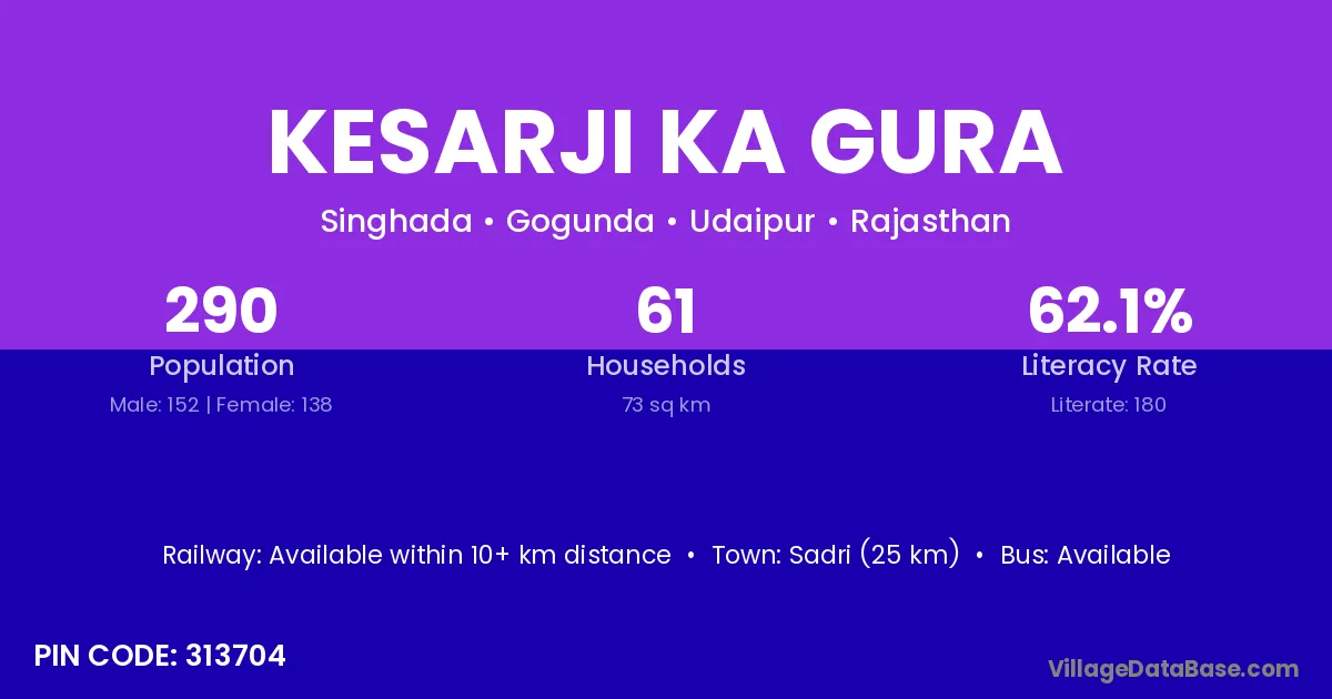 Kesarji Ka Gura village has a total population of 290 people, of which 152 are males and 138 are females.