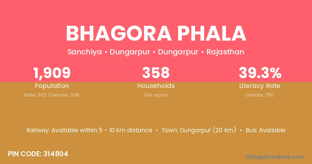 Udaipur (66 km) is the nearest town to Bhagora Phala village for major economic activities and is located approximately 66 km away.