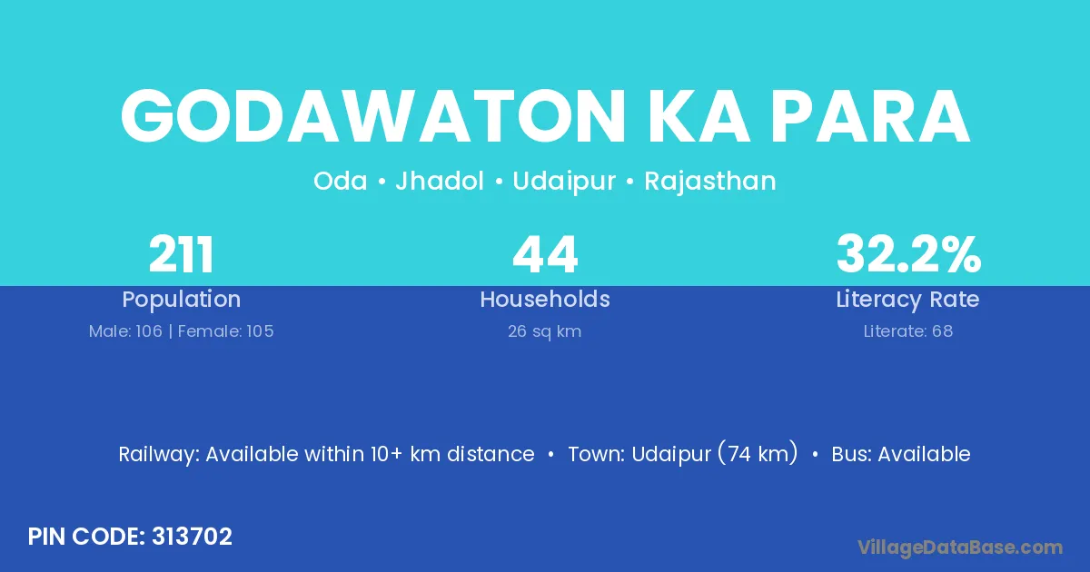 Godawaton Ka Para village has a total population of 211 people, of which 106 are males and 105 are females.