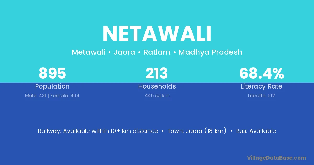 Netawali village has a total population of 292 people, of which 149 are males and 143 are females.