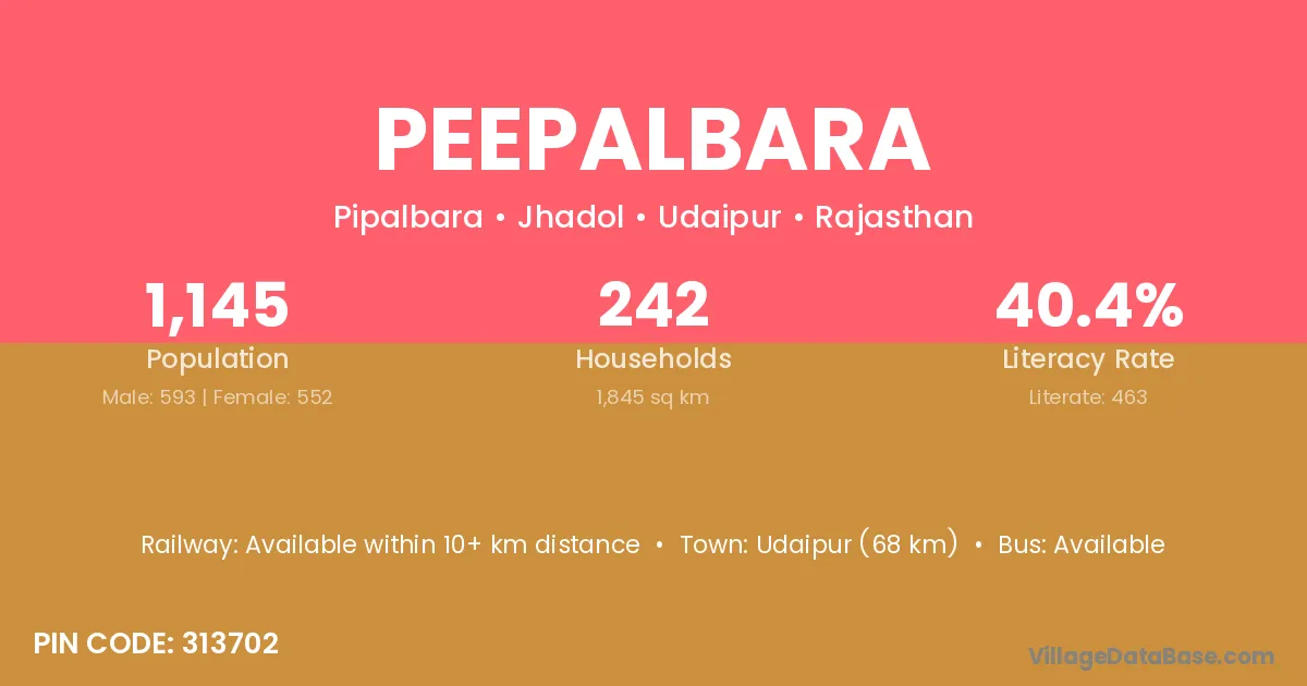 Peepalbara village has a total population of 1,145 people, of which 593 are males and 552 are females.