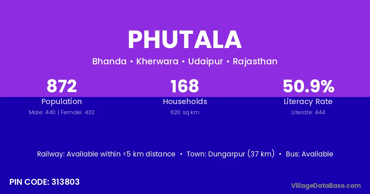 Dungarpur (37 km) is the nearest town to Phutala village for major economic activities and is located approximately 37 km away.