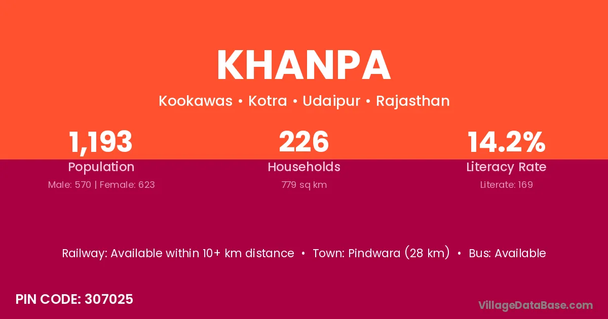 Pindwara (28 km) is the nearest town to Khanpa village for major economic activities and is located approximately 28 km away.