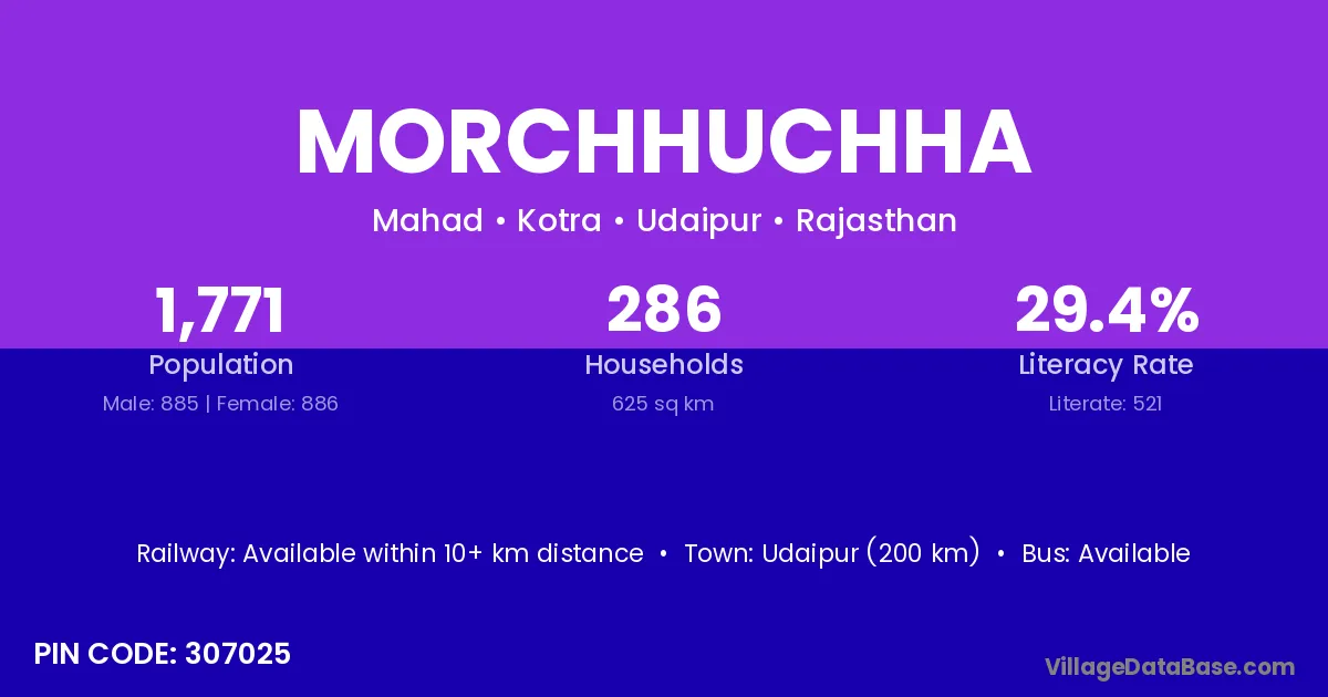 Morchhuchha village has a total population of 1,771 people, of which 885 are males and 886 are females.