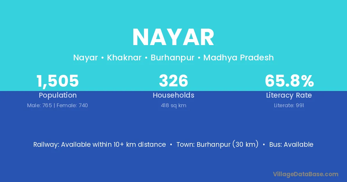 Nayar village has a total population of 408 people, of which 211 are males and 197 are females.