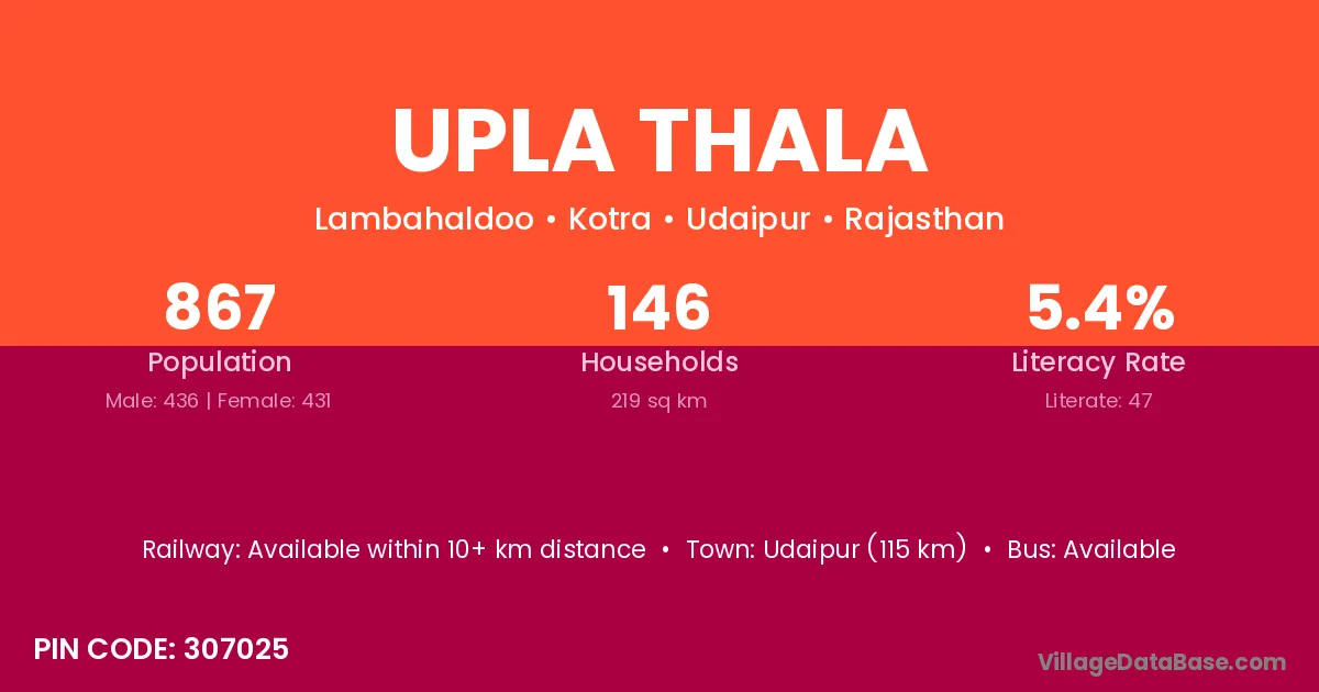 Upla Thala village has a total population of 867 people, of which 436 are males and 431 are females.