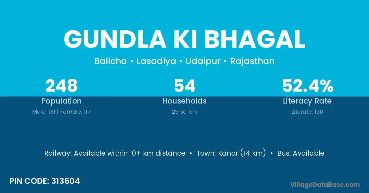 Gundla Ki Bhagal village has a total population of 248 people, of which 131 are males and 117 are females.
