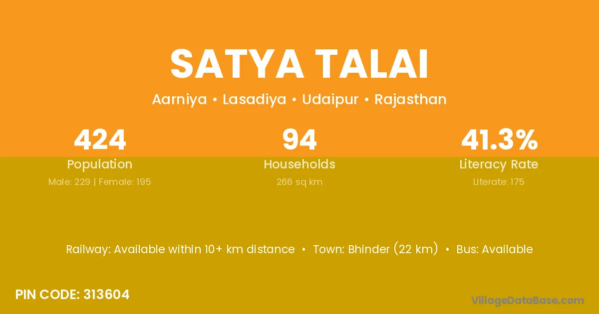 Satya Talai village has a total population of 424 people, of which 229 are males and 195 are females.