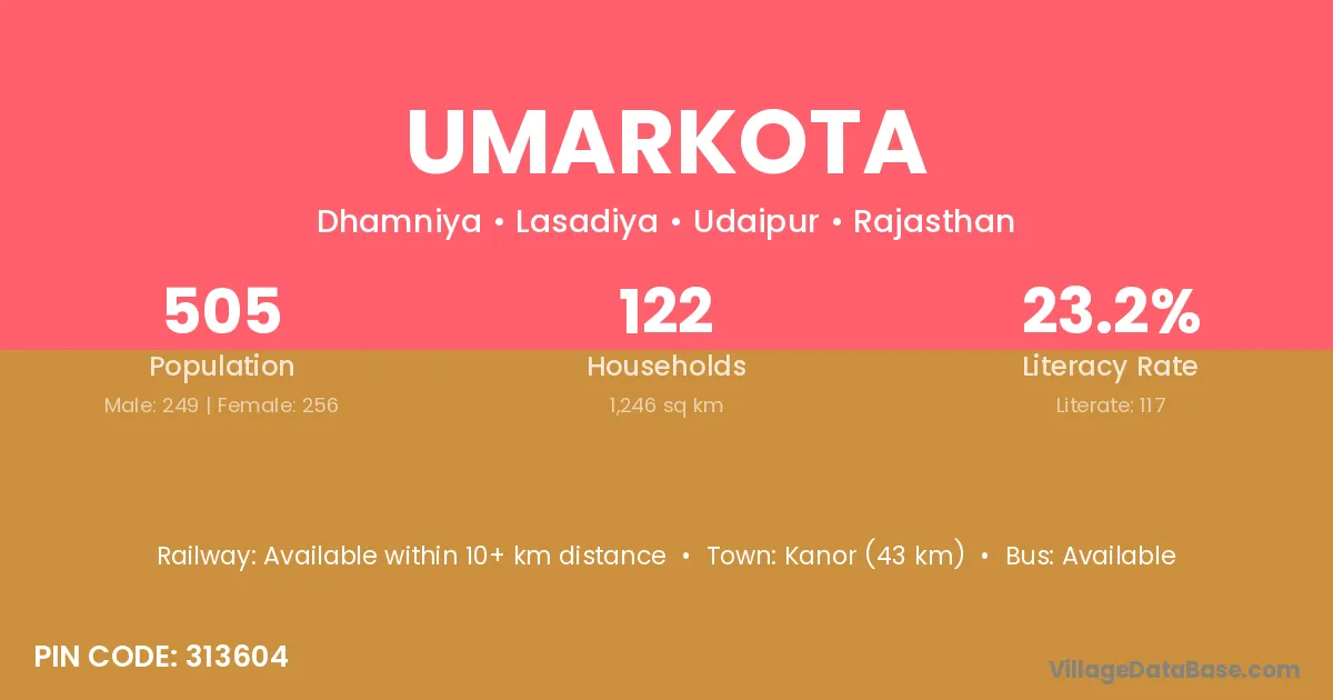 Umarkota village has a total population of 505 people, of which 249 are males and 256 are females.