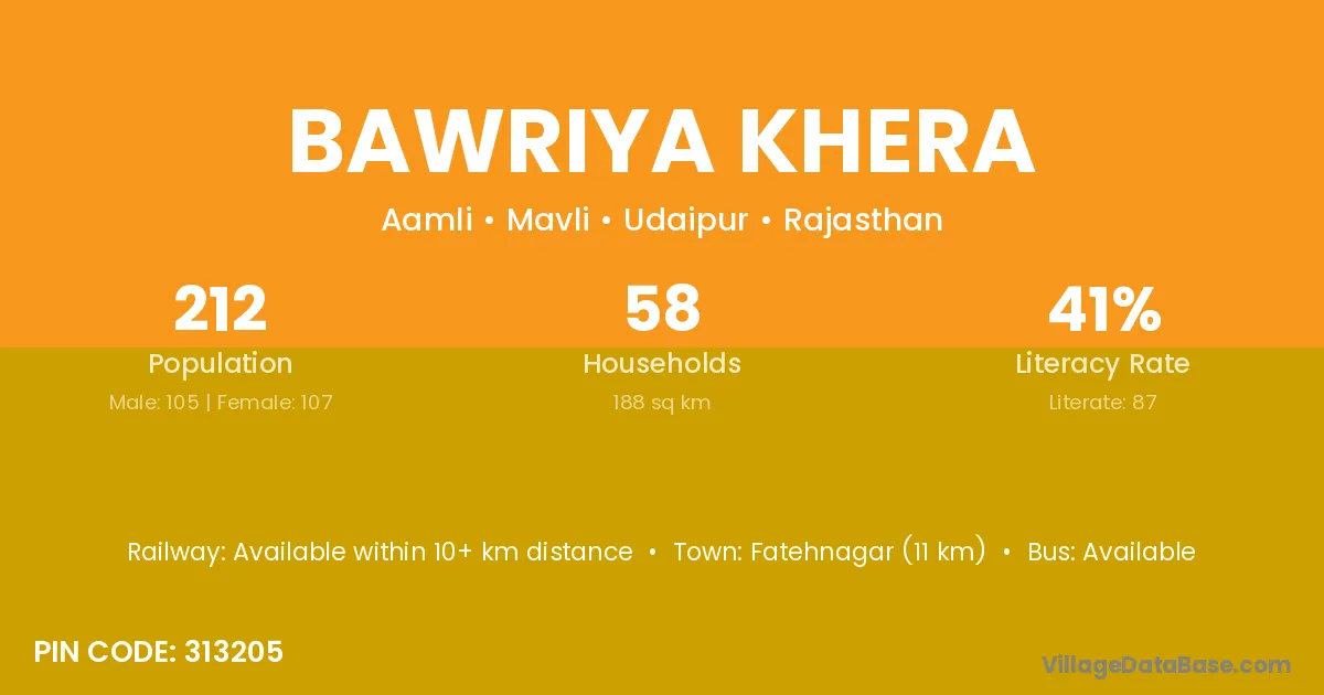 According to Census 2011 information, the village code of Bawriya Khera village is 313205.