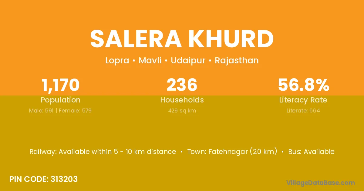 Salera Khurd village has a total population of 1,170 people, of which 591 are males and 579 are females.