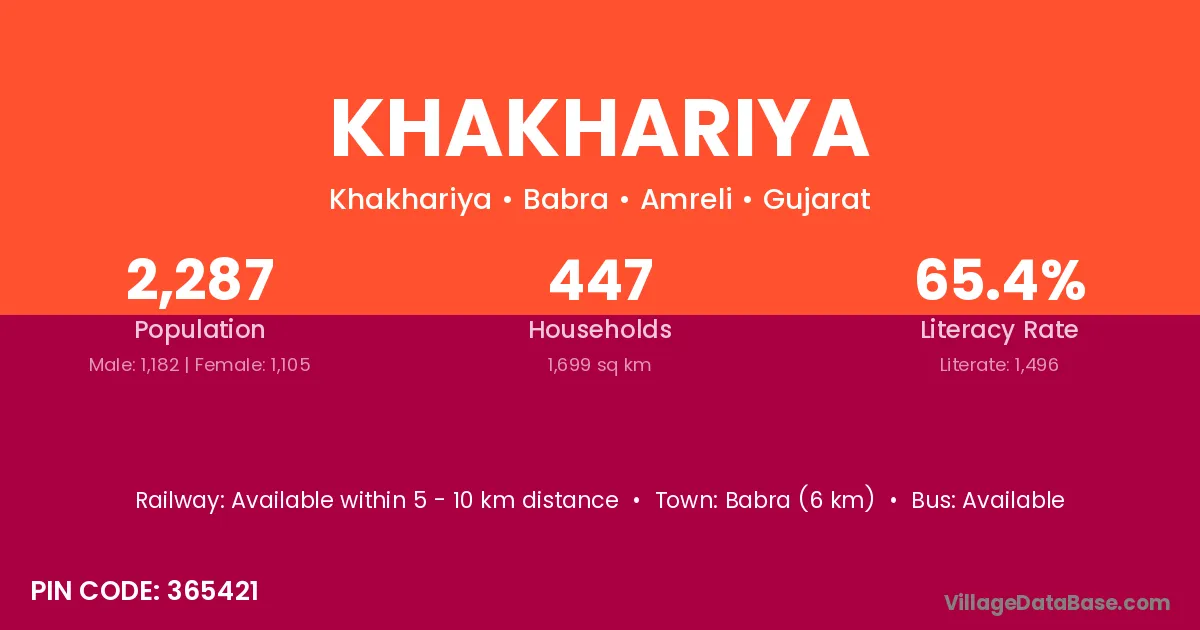 According to Census 2011 information, the village code of Khakhariya village is 313026.