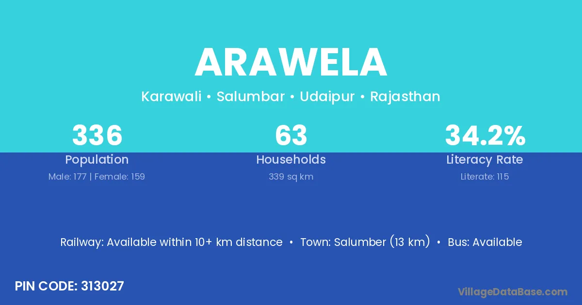 Salumber (13 km) is the nearest town to Arawela village for major economic activities and is located approximately 13 km away.